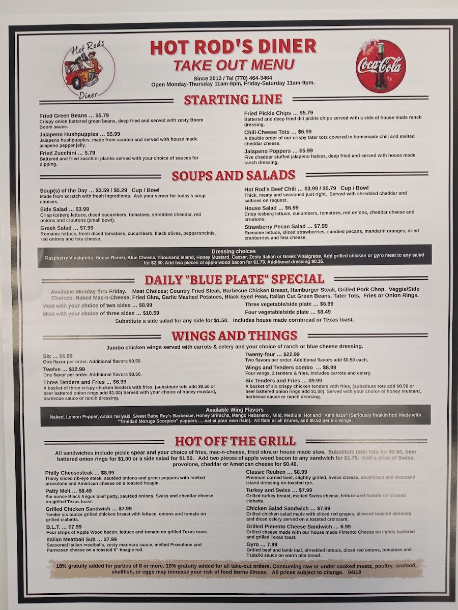 Welcome to Hot Rod's Diner, a culinary gem located in the heart of Social Circle, GA. This charming diner strikes a perfect balance between nostalgia and quality Southern cooking. As you step in, the vibrant red and white decor invites you to indulge in a menu bursting with flavors.