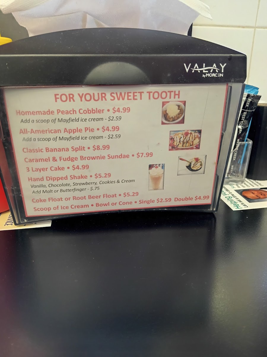 The menu features all-time favorites like juicy hamburgers, crispy country fried steak, and classic fried okra, ensuring there's something for everyone, even the youngest diners with kids' meals priced at just $6.99. Sweeten your visit with delightful desserts, including homemade peach cobbler and a rich caramel & fudge brownie sundae.